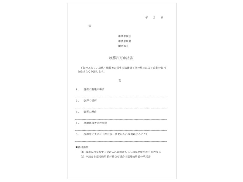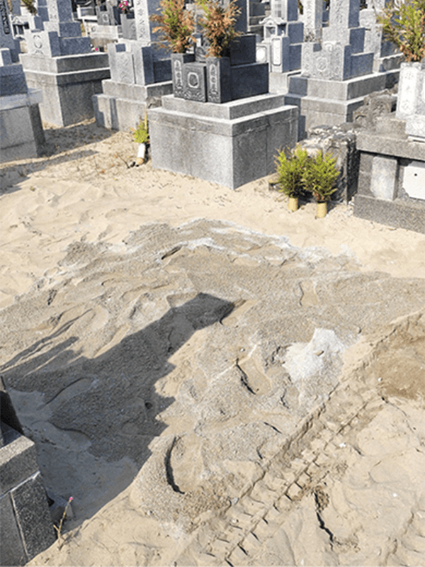 島根県・福岡県でお墓じまいをお考えの皆さまへ 「住まいの近くにお墓や納骨堂を準備したので、実家のお墓をお墓じまいして、仏様を移動させたい」「お墓の跡継ぎがいないので、お墓じまいをしたい」など、さまざまなご事情で継いでいくことができなくなってしまったお墓を解体し、墓地を返還できるよう更地化いたします。お見積り・ご相談は無料です。 島根県西部一律 385,000円(税込)(シンプルプラン) 福岡県北九州市・福岡市、山口県下関市一律 440,000円(税込)(シンプルプラン) LINE 電話(島根) 電話(北九州・下関) 電話(福岡) お墓じまいの料金プラン 「平米〇〇万円と言われてもわからない」「お寺との付き合いはなく遺骨をどうすればいいのかわからない」 そんなお客様の声に応え、当社では3つのプランをご用意いたしました。 シンプルプラン 島根 385,000円(税込) 福岡 440,000円(税込) お墓の広さや立地に関わらず、一律価格で墓石解体いたします。また自治体へ「改葬許可申請書」の提出をお手伝いいたします。(法律上、申請の代行が出来ませんが丁寧にサポート致します。) 追加請求はございません。ただし、作業員安全のため機械作業にて工事致します。機械搬入が困難な場所につきましては見積もりにて対応致します。 詳しくはLINEまたはお電話にてお気軽にお問合せ下さい。 ベーシックプラン 島根 550,000円(税込) 福岡 650,000円(税込) ご遺骨の改葬先にお悩みの方 墓石解体+納骨されているご遺骨の改葬 セットプラン 宗教儀式(閉眼供養、魂抜き法要、遷仏法要)お布施含みます。海洋葬などの散骨をご希望の方もこのプランをご選択ください。 詳しくはLINEまたはお電話にてお気軽にお問合せ下さい。 納骨プラン 島根 880,000円(税込) 福岡 980,000円(税込) 御終活をお考えの方 墓石解体+ご遺骨の改葬+納骨堂の購入 宗教儀式(閉眼供養、魂抜き法要、遷仏法要)お布施含みます。 お住いやご希望の土地から近い、当店にご協力いただいたお寺様のご納骨堂を購入いただけます。 詳しくはLINEまたはお電話にてお気軽にお問合せ下さい。 施工実績 お墓じまい前 お墓じまい後 お墓じまい前 お墓じまい後 お墓じまいにかかる費用総額と内訳 お墓じまいと一言で言ってもご想像されるより多くの工程が存在しそれぞれ費用が掛かります。 お墓の撤去費用 お墓の石やコンクリート等の撤去費用の目安は、1㎡あたり約5~12万円です。工事がしにくい難所や、お墓が大きい、広い区画いっぱいにコンクリートを打っている、区画全体を高くしている(階段が付いている)等の場合は、費用が高くなる可能性がございます。 書類手続き諸費用 遺骨を引越し(改葬)される前に、自治体へ「改葬許可申請書」を提出し「改葬許可書」を発行してもらいます。また、申請する時に必要な書類の記入や発行を墓地・霊園の管理者にしてもらう必要があります。その発行に0円~数百円かかります。※画像は参考例となります。 閉眼供養のお布施 ご宗教によって、お墓の撤去工事を始める前に、宗教儀式(閉眼供養、魂抜き法要、遷仏法要)をしてもらうのが一般的です。島根県でのお布施に決まりはありませんが、相場は2~3万円の場合が多いです。 遺骨の引越し先にかかる費用 墓じまいをするお墓に納骨されているご遺骨は、一般的に、お引越し(改葬)します。選択肢としては、合祀墓(合葬墓)、樹木葬、新しいお墓、納骨堂、場合によっては海洋散骨などございます。新しい引越し先を準備されるには、それぞれ費用がかかります。最も費用が少ない合祀墓の場合でも約5万円~(1名様)です。 お墓じまいにかかる総費用は300,000円~2,000,000円とも言われております。 ご利用の流れ お問い合わせ お問い合わせ LINEまたはお電話にてお問い合わせいただき、お墓の場所・ご希望の納期とプランをお知らせください。 お墓の場所を確認 お墓の場所を確認 お墓じまいする場所を確認します。確認後、ご契約書を作成し郵送しご返送いただくか、専門スタッフが伺いご成約となります。 宗教儀式 宗教儀式 閉眼供養、魂抜き法要、遷仏法要など墓石解体前にご先祖様へのご挨拶とお知らせ、また作業の安全の為に読経いただきます。 墓石解体作業 墓石解体作業 ご成約順に丁寧に工事いたします。 ご遺骨の改葬 ご遺骨の改葬 墓石解体にて取り出されたご遺骨を改葬いたします。 よくあるご質問 注文から完了まで期間はどのくらいですか? 墓石解体作業は1~5日間で完了することが多いです。またご成約順に工事いたしますので実工事日については目安日をお伝えしております 。 支払いはどのようになりますか? 工事日の1週間前に指定口座へのお振込みをお願いしております。宗教儀式や改葬手続きの為です。安心安全に施工させていただきます。。 遠方に住んでいます。当日までLINEや電話で連絡を取れますか? はい。LINEや電話、メールでの応対も可能です。ご安心ください。 お寺の墓地です。対応は可能でしょうか? はい。ほとんどのお寺様で対応可能です。事前にお